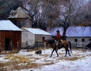 Martin Grelle lives with his wife, Terri, and their children near the small, Central Texas town of Clifton, just a few miles from where he was born. Grelle treasures the camaraderie among these artist friends and the rare opportunity it affords him. Grelle's work reaches far beyond his Texas home conveying the spirit, drama, beauty and vastness of the American West. Whether painting a Native American in a dramatic setting or a working cowboy on the range, he captures the essence of the West in his historically-accurate, picturesque, peaceful, yet compelling, images. He enjoys the Cowboy Artists of America's (CAA) trail ride each year and manages to spend some time occasionally working cattle with local friends. He is proud of the Native American part of his ancestry and studies diligently to portray their culture accurately and sensitively. Grelle is able to take event he mundane daily task and elevate it to a new level in each painting. Grelle began painting at an early age. With the guidance of Western artists James Boren and Melvin Warren, both of whom settled in the Clifton area while he was in high school, Grelle was able to become a full-time artist in his early 20s. Since that time, he has studied, traveled widely, and sought subject matter throughout the American West. Working primarily in oils on canvas, Grelle marries his figures with the landscape in a painterly style rich in vibrant color. Grelle has been profiled in many publications, including Southwest Art, American Cowboy, Art of the West, Western Horseman, The Equine Image, Art-Talk, Persimmon Hill, and InformArt. His work has also been featured on the covers of several magazines and on various historical novels published by the University of Nebraska Press. Elected to the Cowboy Artists of America in 1995, Grelle is one of the youngest active members and won the People's Choice Award at the CAA exhibition in October 2002.